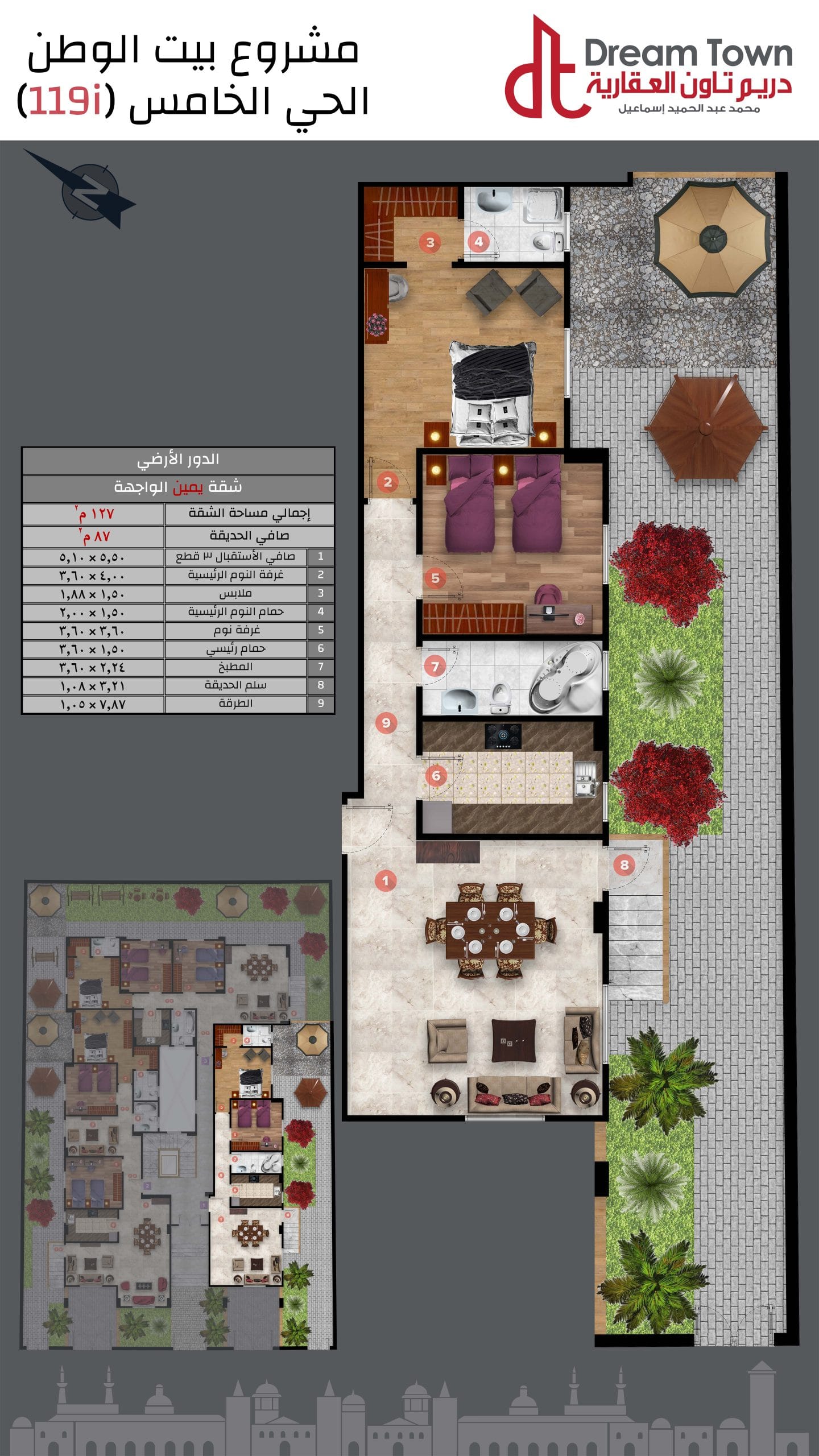1) دخلة صريحة أكبر محور فاصل بين الحي الخامس والسابع(60 م) وبالقرب من محور بن زايد والمونوريل