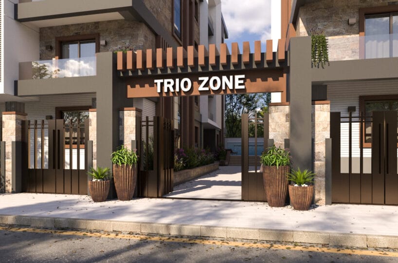 كمبوند تريو زون يقع بالقرب من كمبوند هليوبارك مع اطلالة مفتوحة على شارع رئيسي بعرض ٦٠م. في الحي الأول بمنطقة بيت الوطن – التجمع الخامس. بالقرب من محور محمد بن زايد المؤدي إلى العاصمة الإدارية الجديدة وشارع ال٩٠. يتميز المشروع بمساحات خضراء شاسعة بالإضافة إلى حمام سباحة ومنطقة ألعاب أطفال وصالة ألعاب رياضية. يقدم المشروع العديد من المساحات حيث تبدأ من ١٣١م وحتى ١٩٠م بأفضل استغلال للمساحة وأقل نسب التحميل